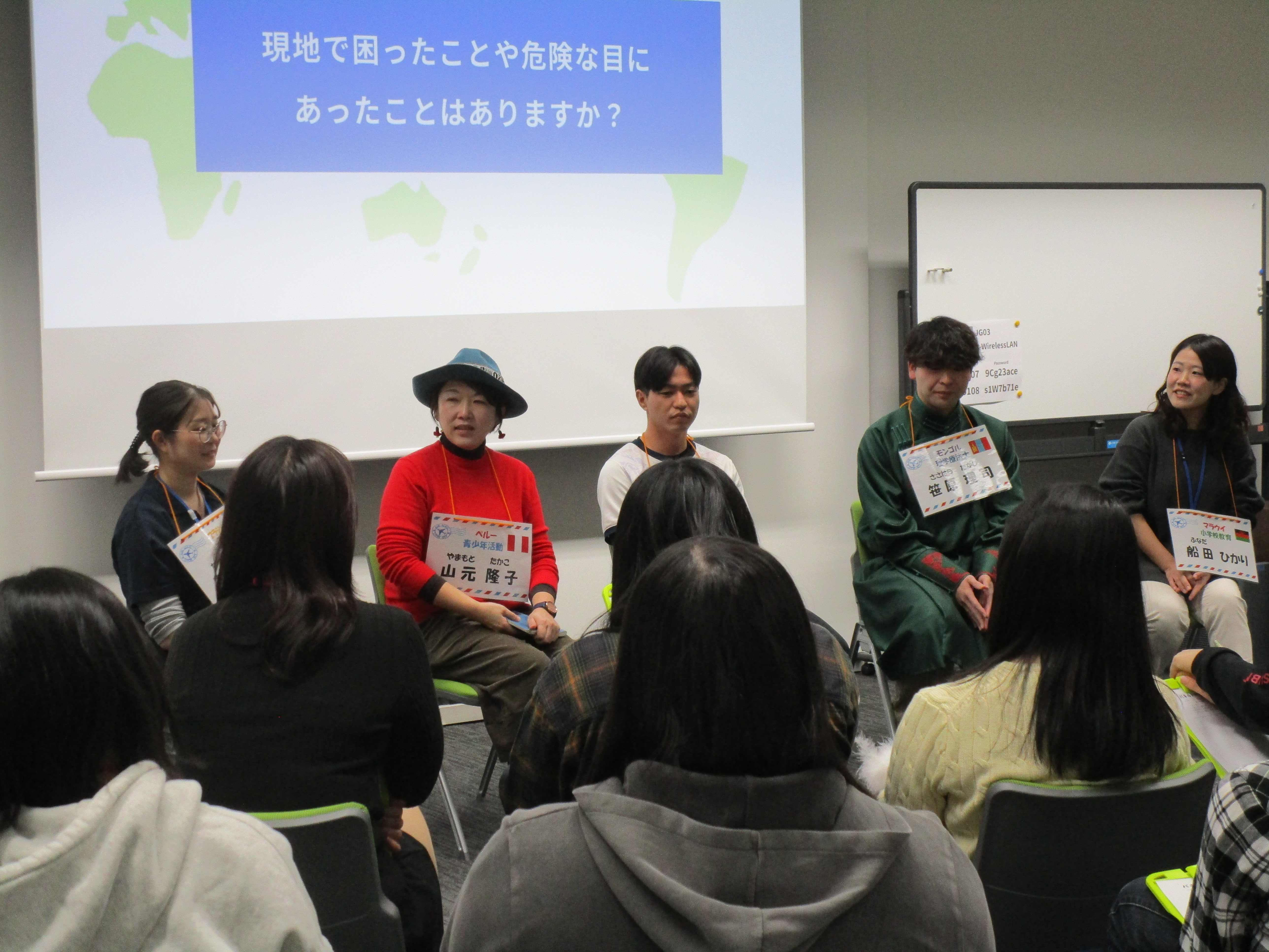 「協力隊に応募したきっかけは?」「活動中に困ったことや、危険を感じた場面は?」「帰国後、協力隊での経験はどのように役立っている?」「現地で恋に落ちたことは?」など、次々に投げかけられる質問に、パネリストたちは自身の経験を交えながら率直に答えていきました。