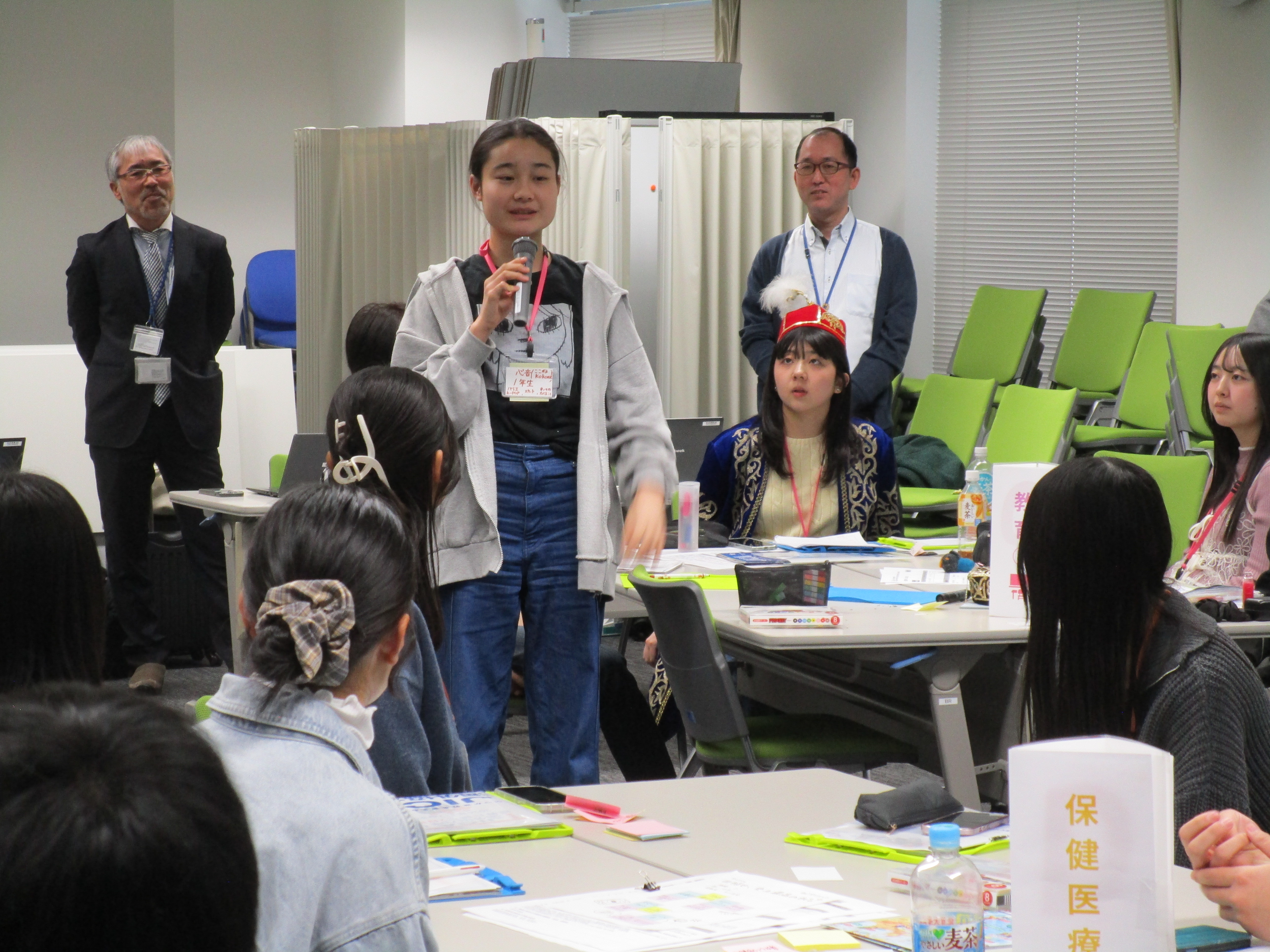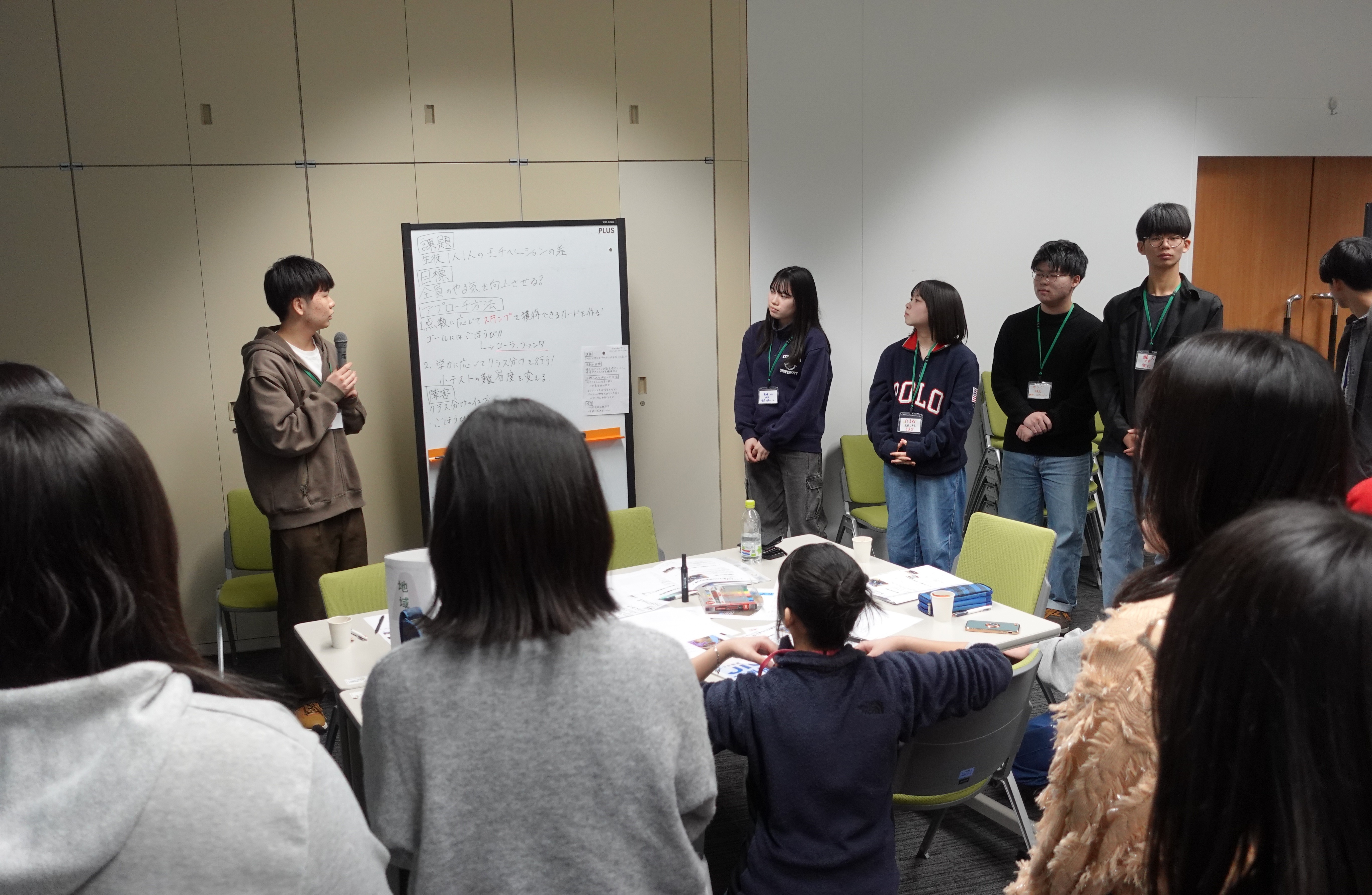 前日に出したアイデアをポスターにまとめ、グループごとに順番に発表を行いました。発表内容や伝え方には、それぞれの個性が表れており、参加者の工夫が随所に感じられました。