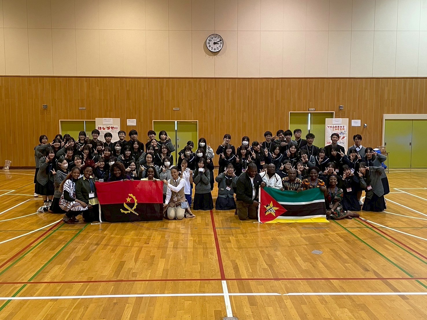 10月16日、研修コース「固形廃棄物管理の基礎」アンゴラとモザンビークからの研修員10名が北海道千歳高等学校を訪問し、国際教養科の1・2年生と交流を行いました。英語やフランス語を公用語とする国が多いアフリカですが、アンゴラとモザンビークではポルトガル語を話します。生徒のみなさんは、事前学習で簡単なポルトガル語のフレーズや自己紹介を学び、当日の交流に臨んでくれました。