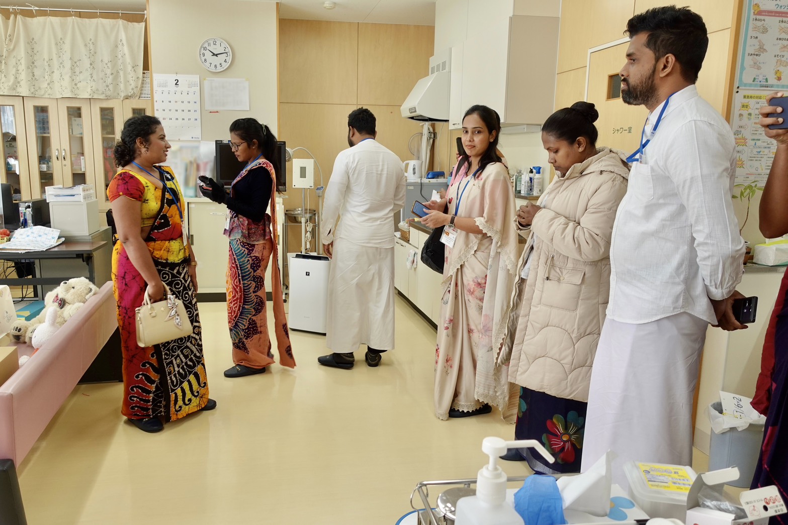 今回訪問した研修員は、普段スリランカの病院で働く看護師などの医療関係者だったため、特に日本の小学校内にある保健室には高い関心を持っている様子でした。