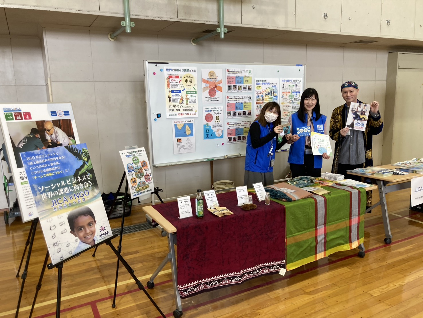 また、JICAブースでは、スリランカ民主社会主義共和国を中心に、持続可能な地域づくりに取り組んでおられる、NPO法人アプカスさんの活動紹介も行いました。