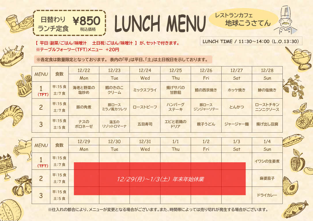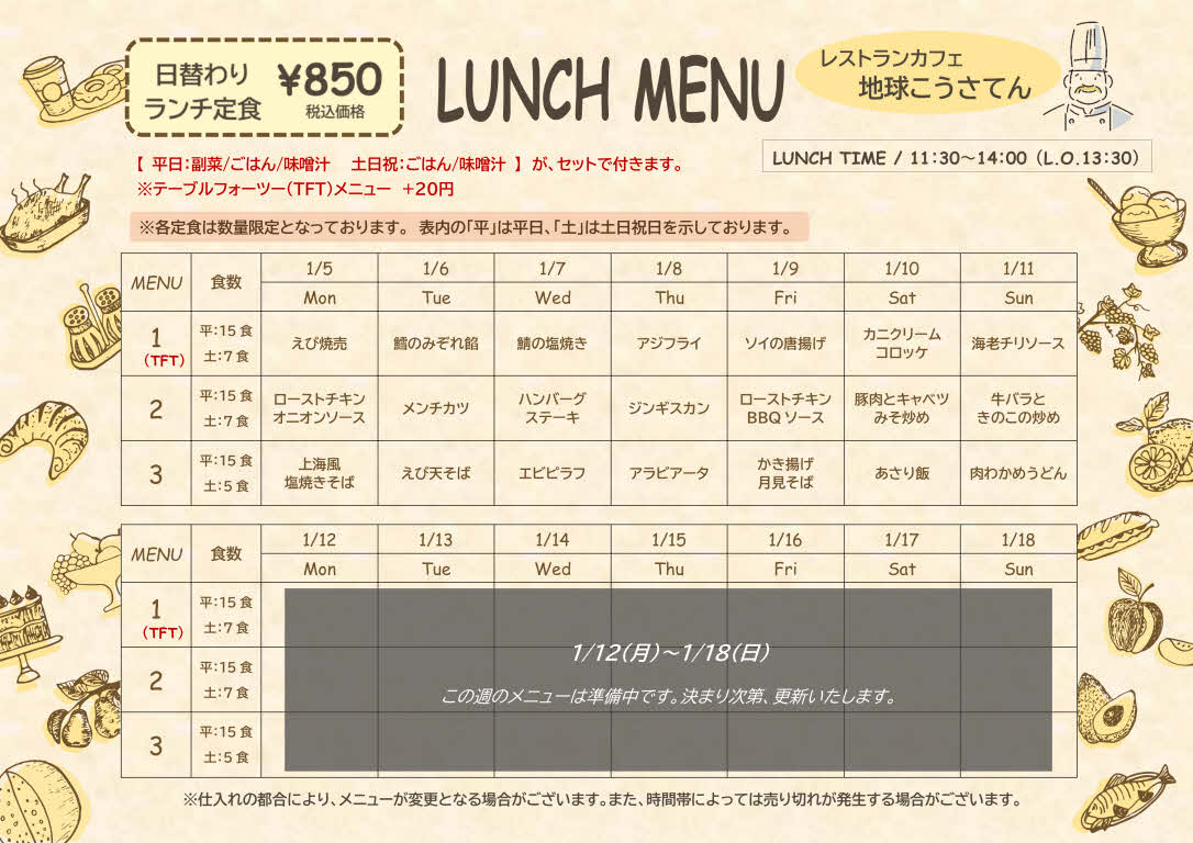 平素よりレストランカフェ・地球こうさてんをご利用いただきありがとうございます。