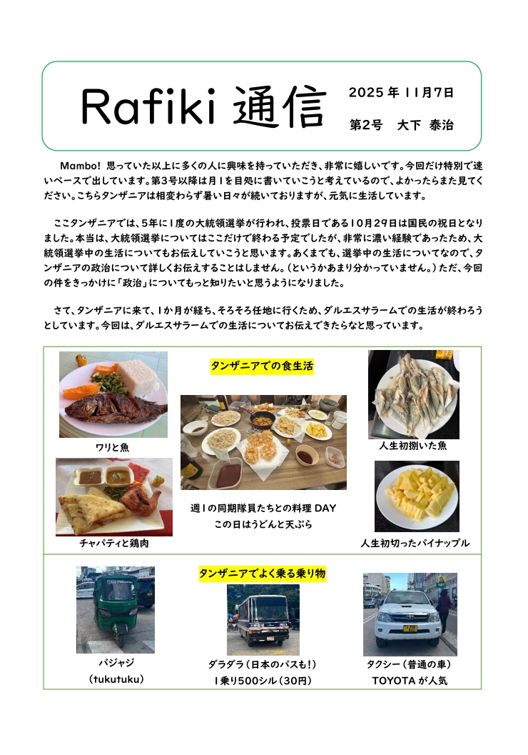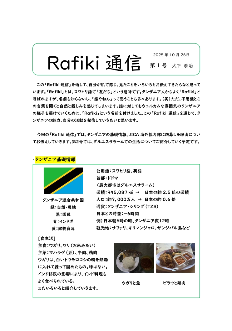 大下泰治さん「ラフィキ通信」