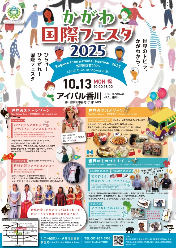 今年も「かがわ国際フェスタ」がアイパル香川で開催されます!香川県内の国際交流・協力団体、約40団体が一堂に集結し、世界の文化・食・体験が楽しめる1日です。