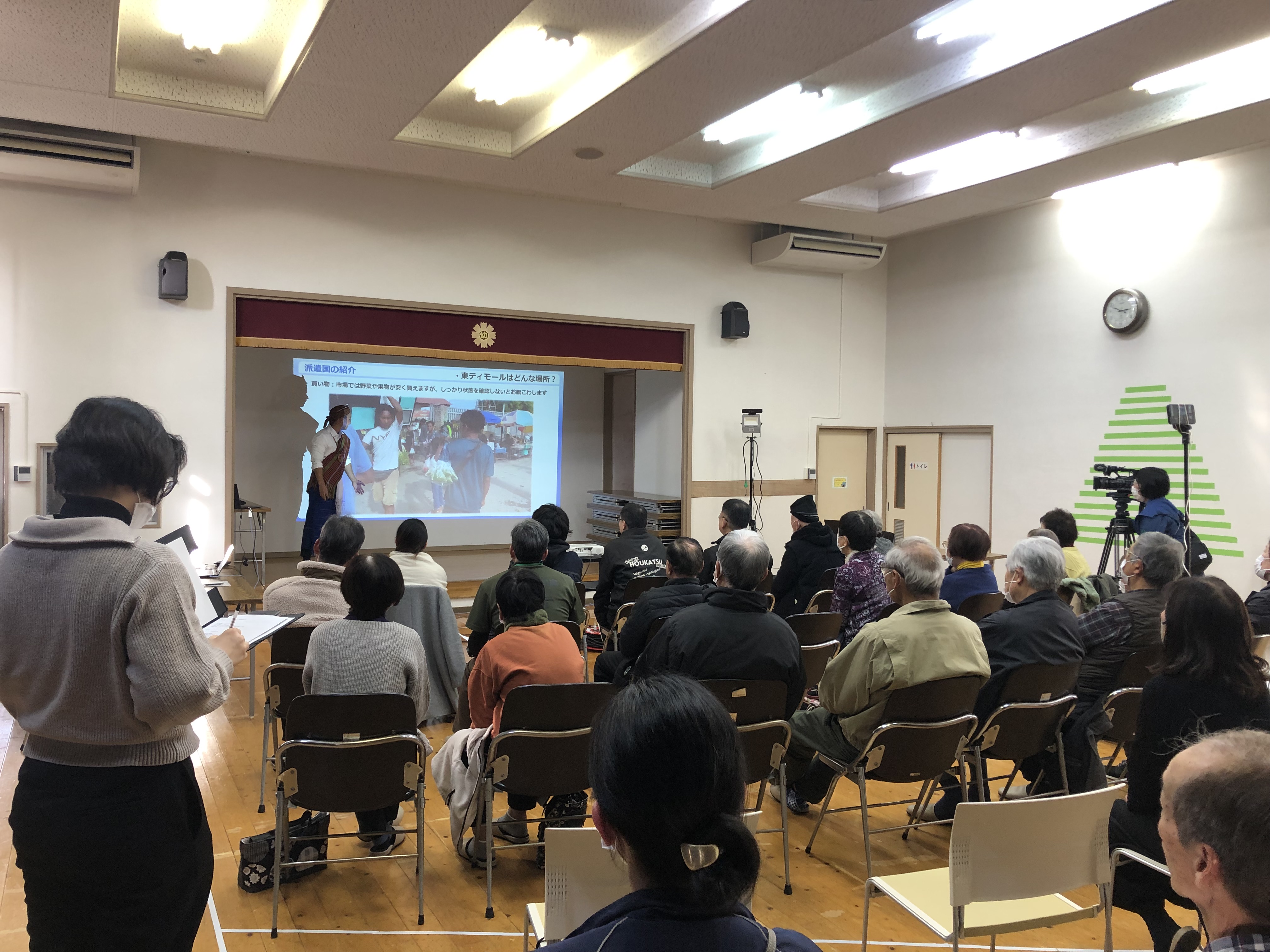 愛媛県宇和島市では、2023年7月からJICA海外協力隊派遣前訓練「グローカルプログラム」が実施されています。宇和島市グローカルプログラム第1期生の川口正樹さん(タイ/障害児・障害者支援)、前原信輝さん(東ティモール/観光)の2名が2年間のJICA海外協力隊の活動を終え、日本に帰国後、再び宇和島市を訪問しました。宇和島市で開催された帰国報告会では、協力隊の活動内容を聞こうと宇和島市民、関係者など多くの方が集まりました。