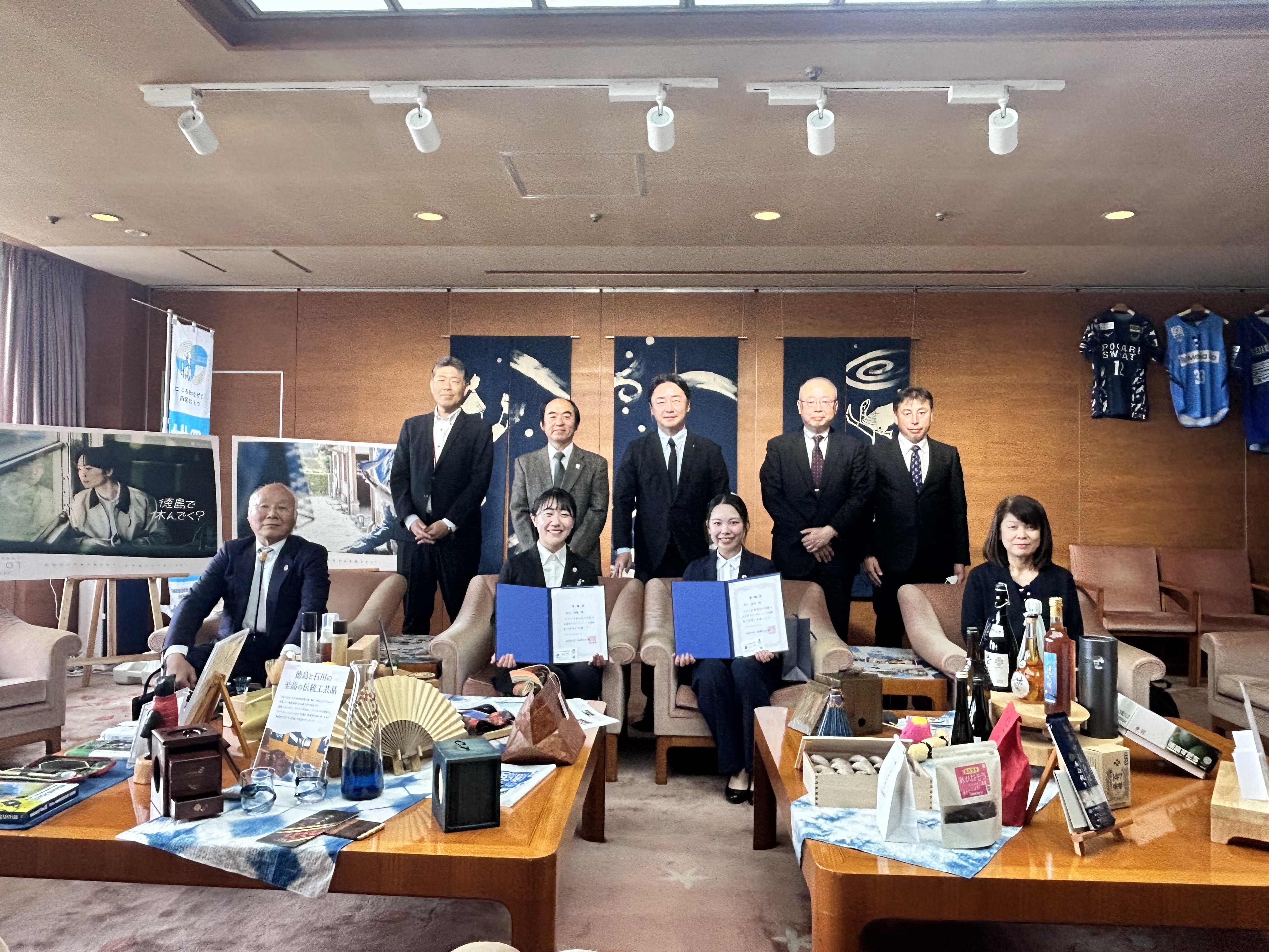 左から3人目:福本麻愉さん、4人目:遠藤彰良 徳島市長