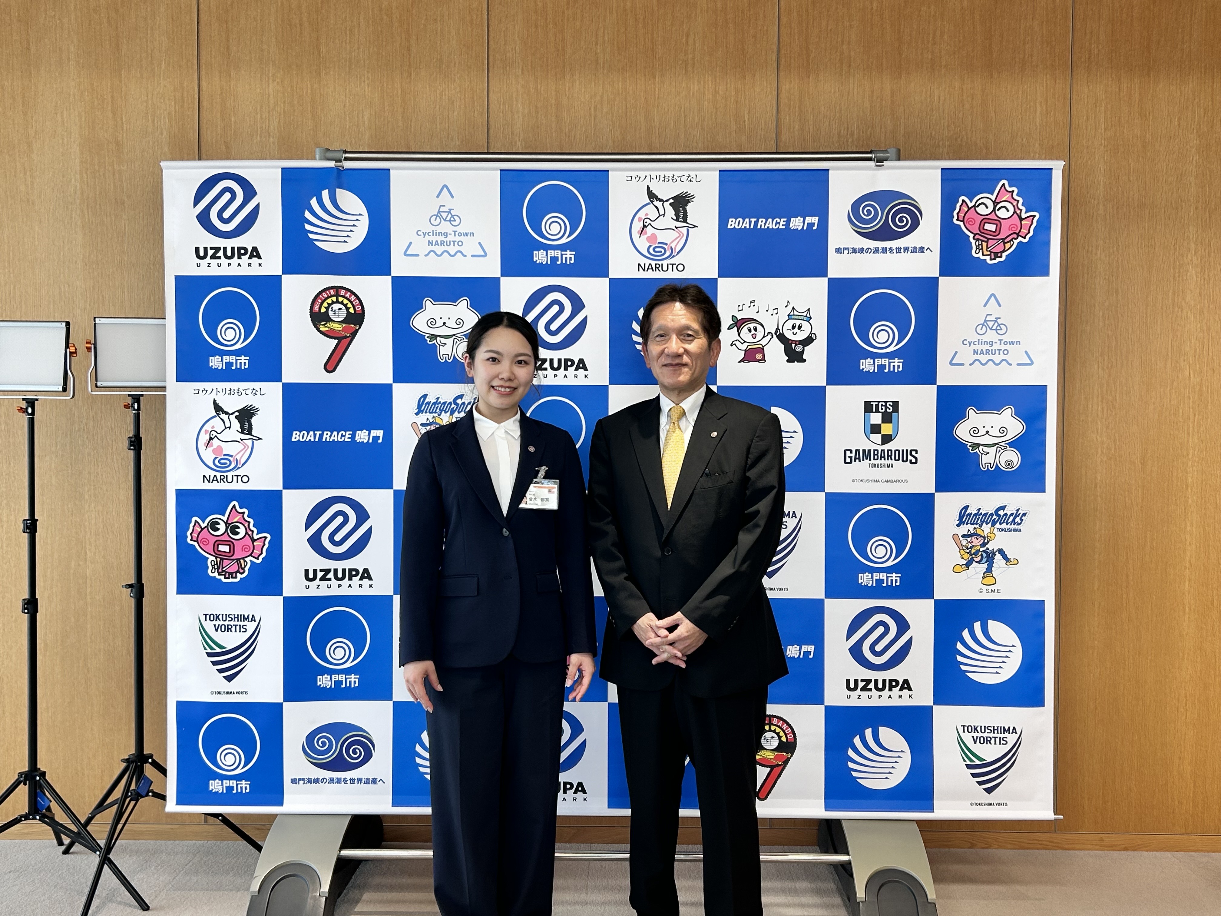 (左)曾木郁実さん、(右)泉 理彦 鳴門市長