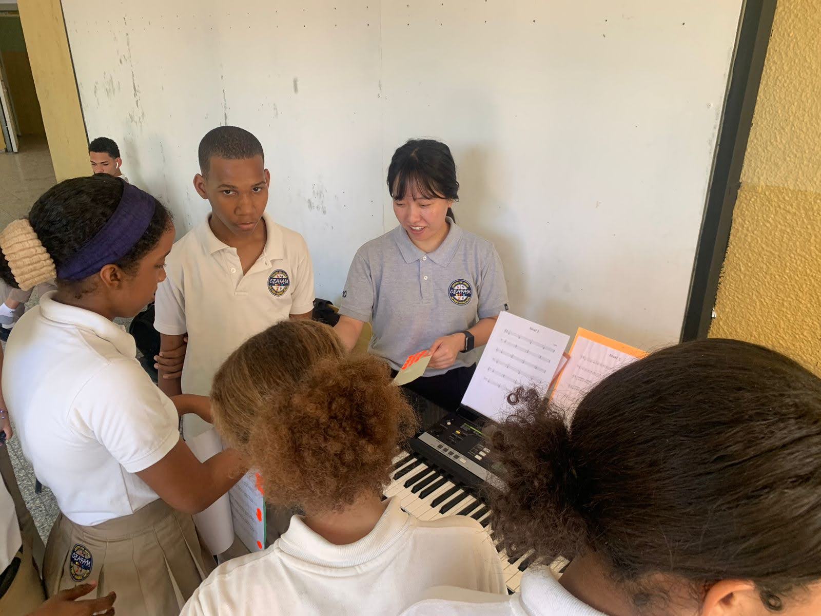 2024年8月からカリブ海に浮かぶ島国・ドミニカ共和国で音楽隊員として活動している井上裕美子です。私が活動しているのは、首都の隣に位置するサント・ドミンゴ・エステ市にある「Fabio Amable Mota」という学校です。この学校は芸術分野に特色があり、ダンス・演劇・陶芸・メディア・音楽などを専門的に学ぶことができます。私はそこで音楽教員として、合奏やピアノ、リコーダーの授業を担当しています。現在は、基礎合奏や音楽理論の授業を同僚と協力しながら進めています。