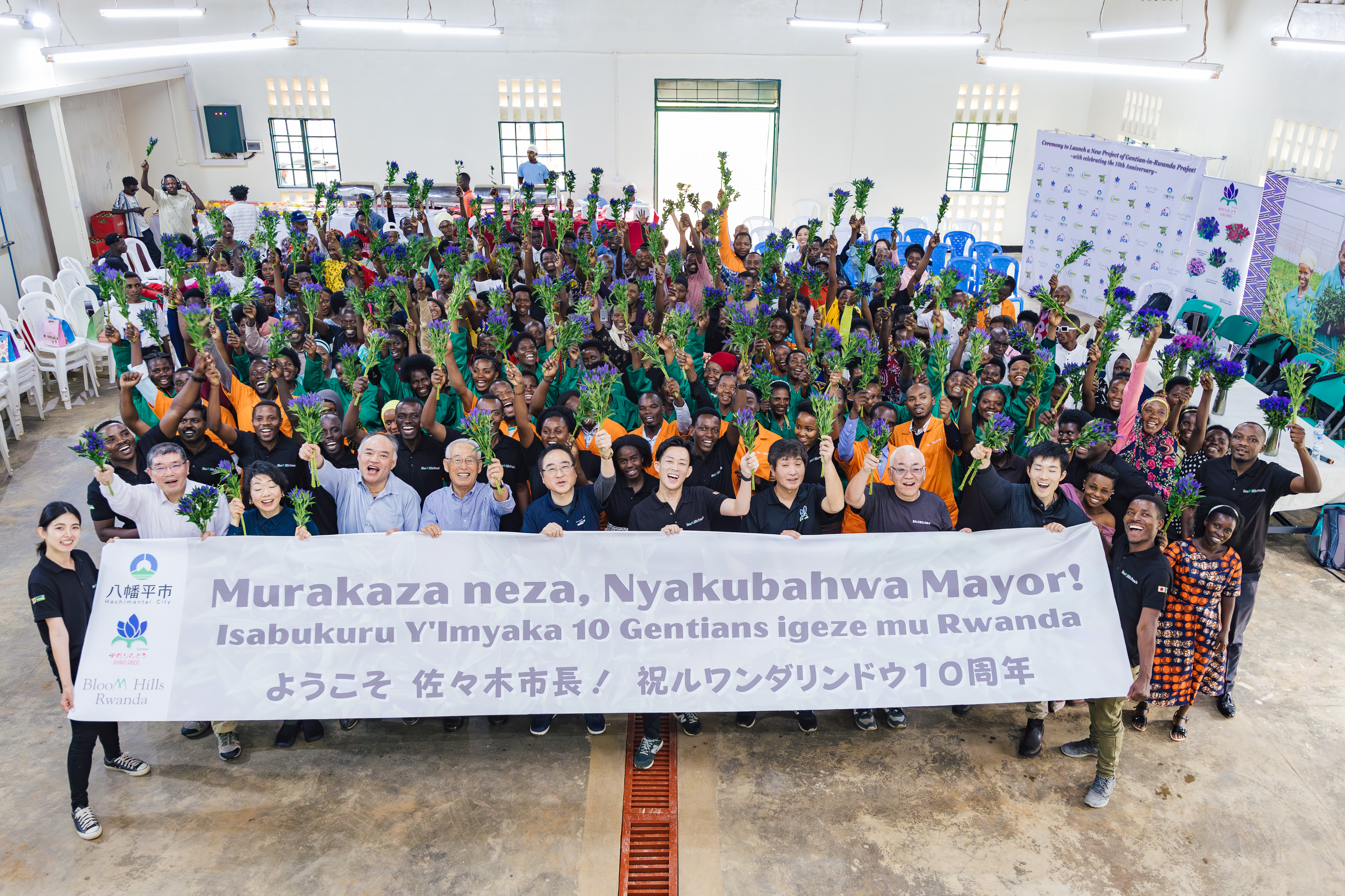2025年には八幡平の佐々木市長はじめ関係者がルワンダを訪問し、2015年の試験栽培から始まったりんどうプロジェクトの10周年を皆で祝った