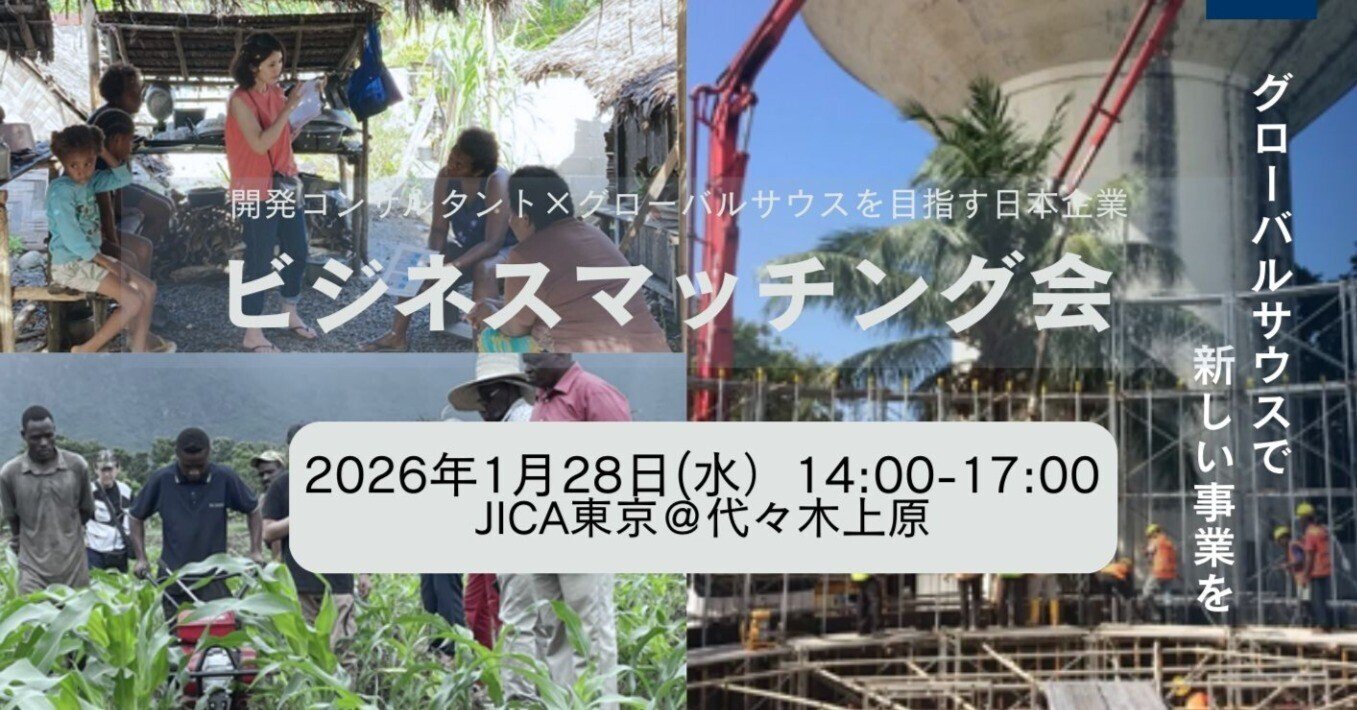 このたび、グローバルサウス諸国への事業展開に関心をお持ちの企業様を対象に、「開発コンサルタント×グローバルサウスを目指す日本企業 マッチング会」を開催いたします。