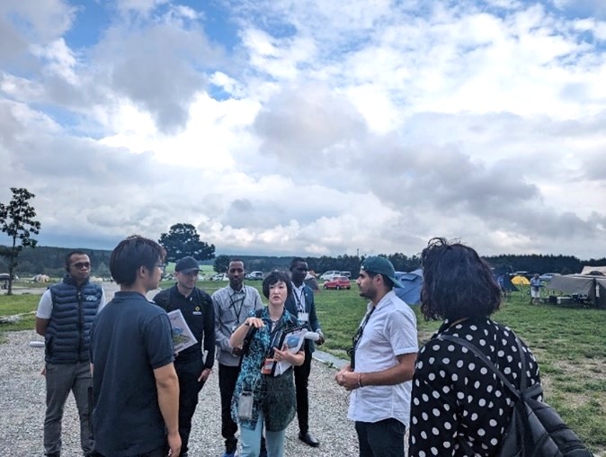もう1つのグループは静岡県に移動しました。ヨルダン、マダガスカル、ザンビア、エクアドル、エチオピア、パレスチナからの研修員6人は、静岡県の大人気な観光スポット「ふもとっぱら」オートキャンプ場を訪れました。