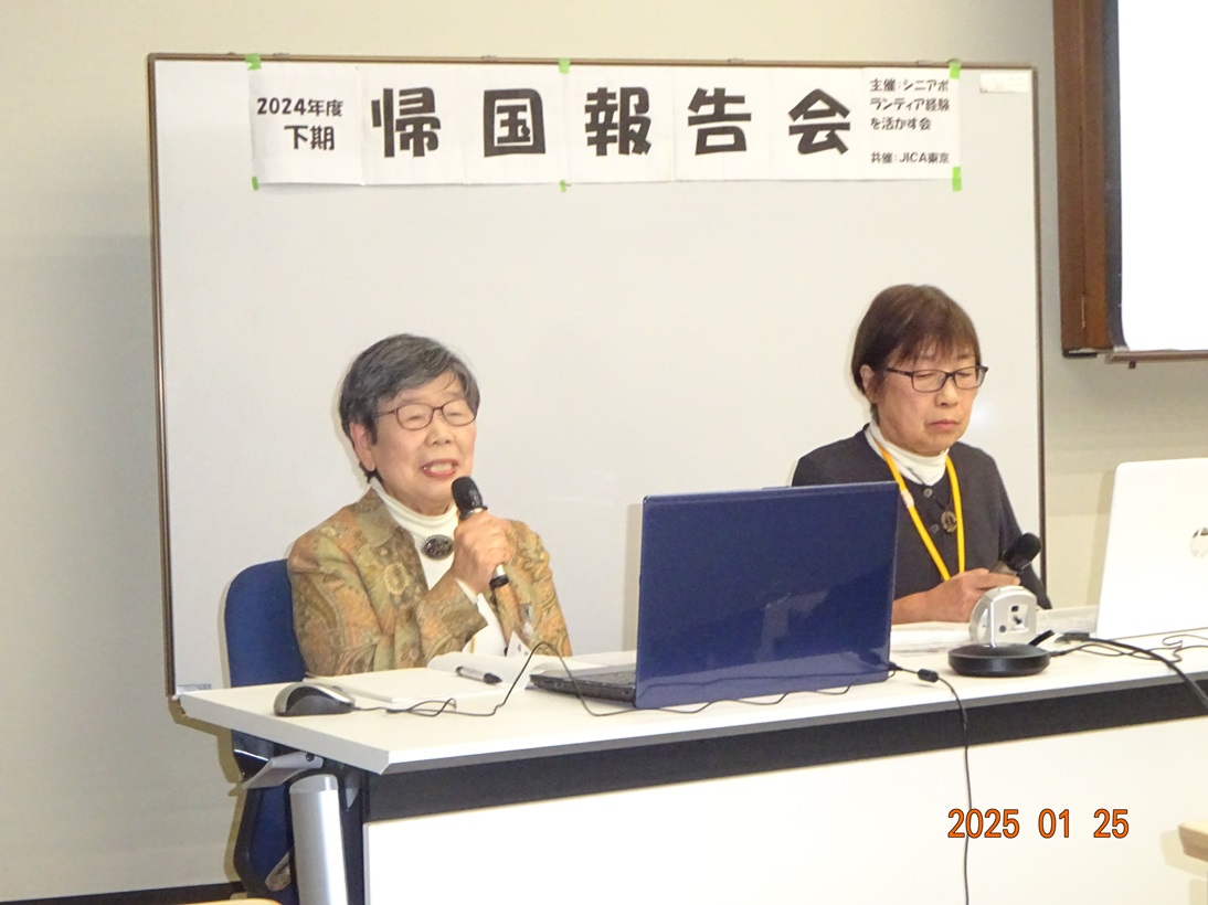 2025年1月25日(土)、JICA東京で『2024年下半期JICA海外協力隊帰国報告会』が開催され、7名の方が派遣国での活動を報告しました(主催:NPO法人シニアボランティア経験を活かす会、後援:JICA東京)。