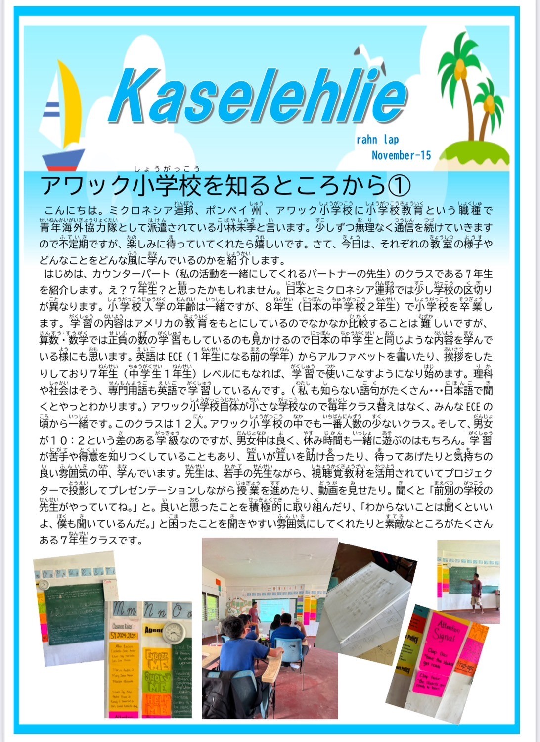 【埼玉県・海外協力隊現地レポート】ミクロネシアから現地レポートが届きました!第2弾