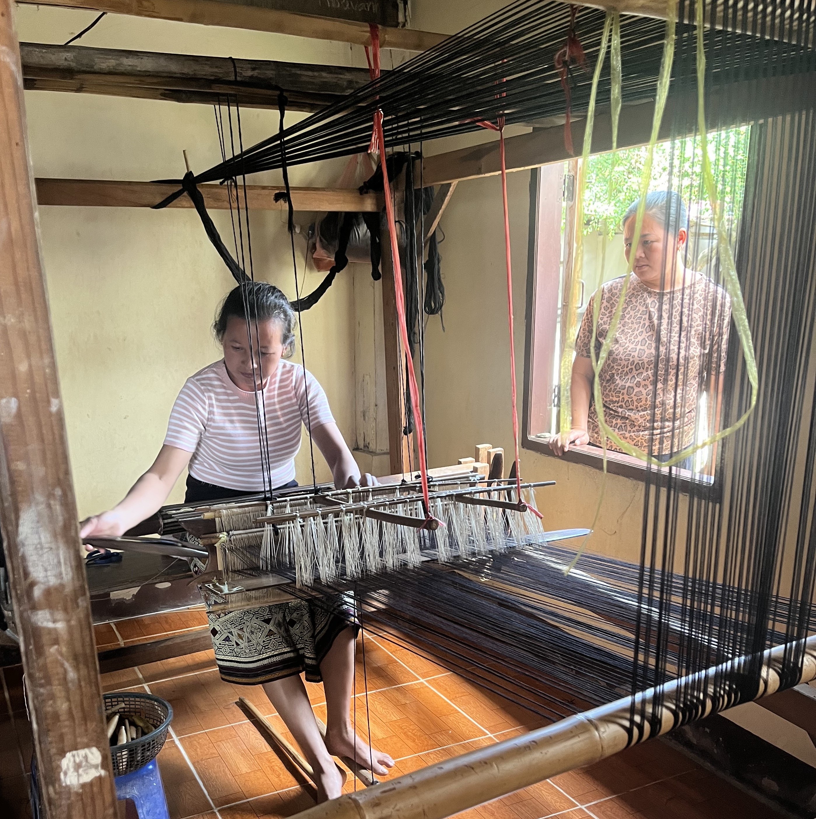 自宅で織物を織る様子。シェンキョウ村では多くの女性たちが自分たちの手で織物を織ることができます。