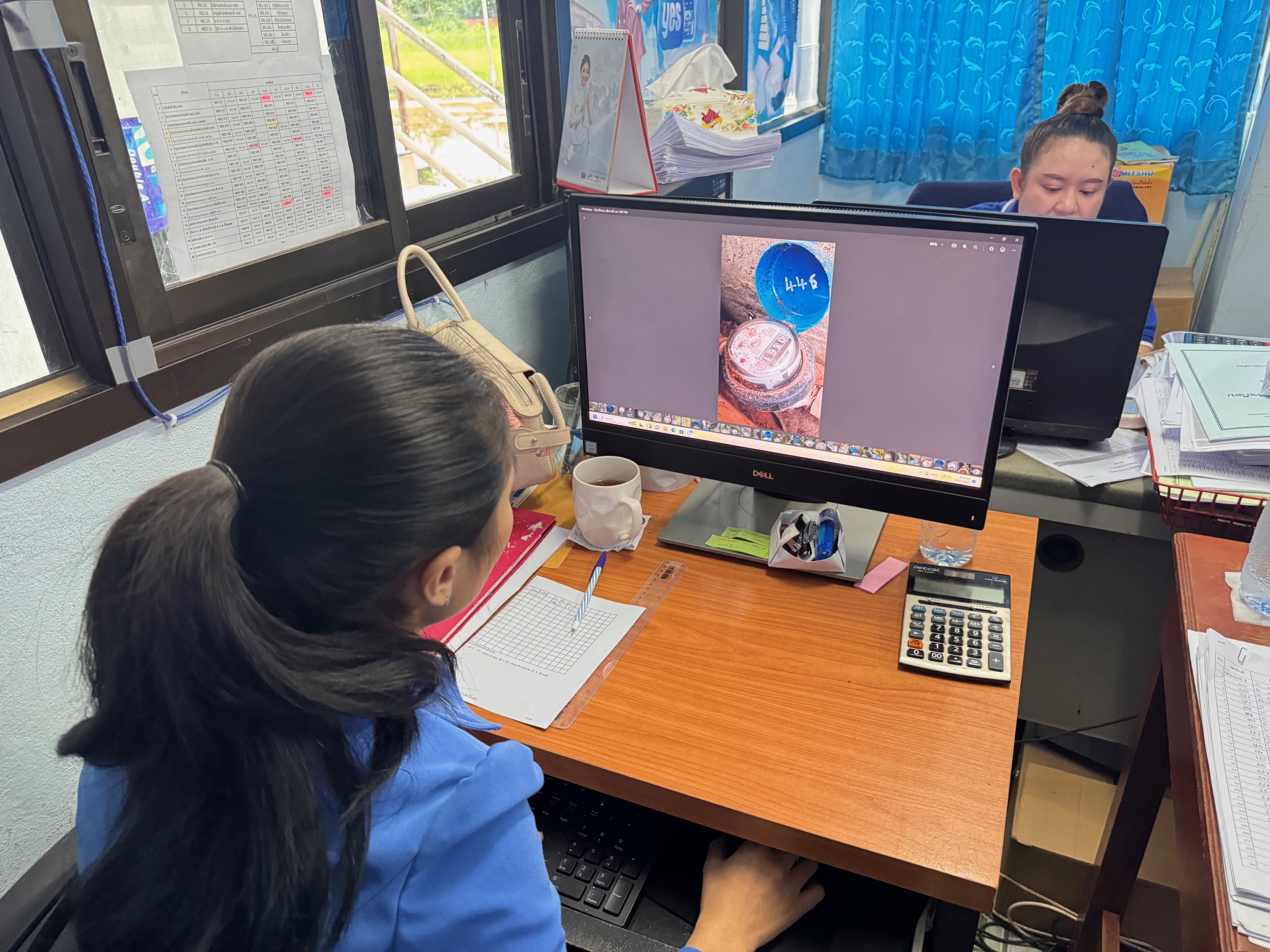 さいたま市水道局は、まずカムワン県での検針業務の状況について、同行調査を実施しました。カムワン県水道公社における水道メーター検針では、検針員が紙の検針リストを現地に持参し、検針結果を手書きで記録した後、入力担当者が請求システムに転記する方法により実施されていました。また、利用者からの水道料金に関する問い合わせに対応する資料として、全戸を対象に水道メーターの写真撮影を行っていました。検針員1名あたりの担当件数は月約1,500件に達しており、業務負担が大きい状況にあることも分かりました。
