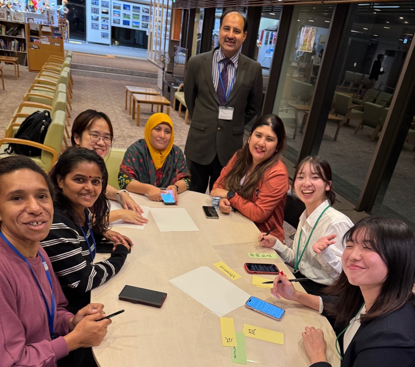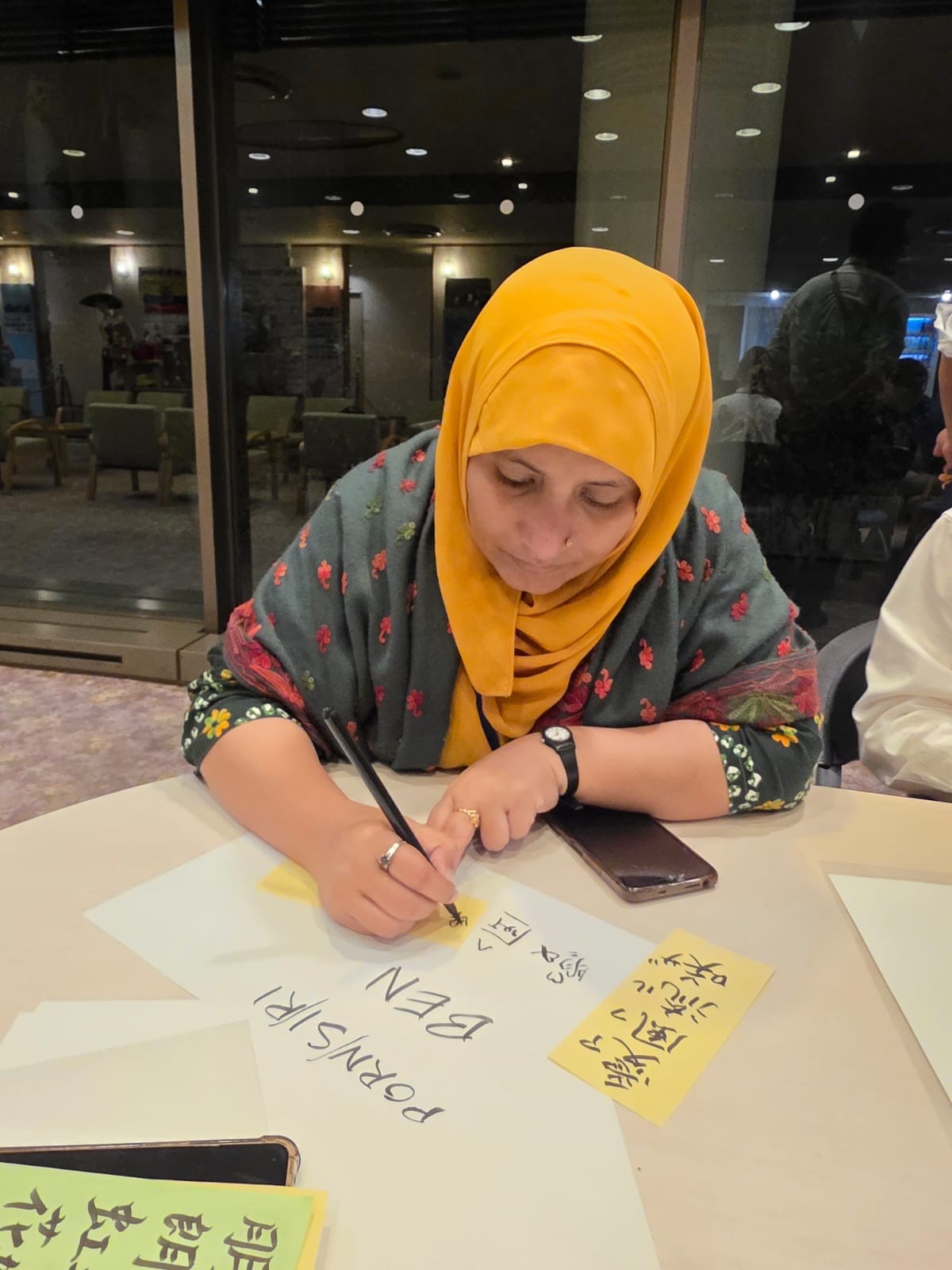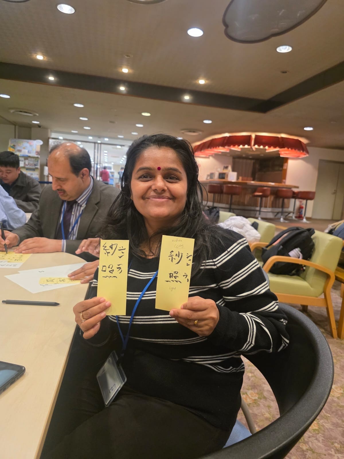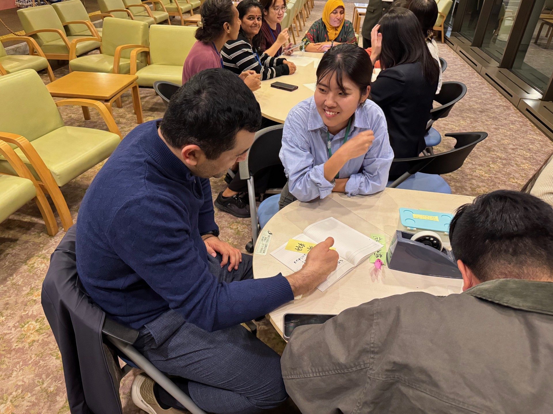 中には「娘の名前も書いて!」と追加の依頼が出るほど好評で、家族全員の名前に挑戦する研修員も。会場は終始、にぎやかで温かい雰囲気に包まれました。