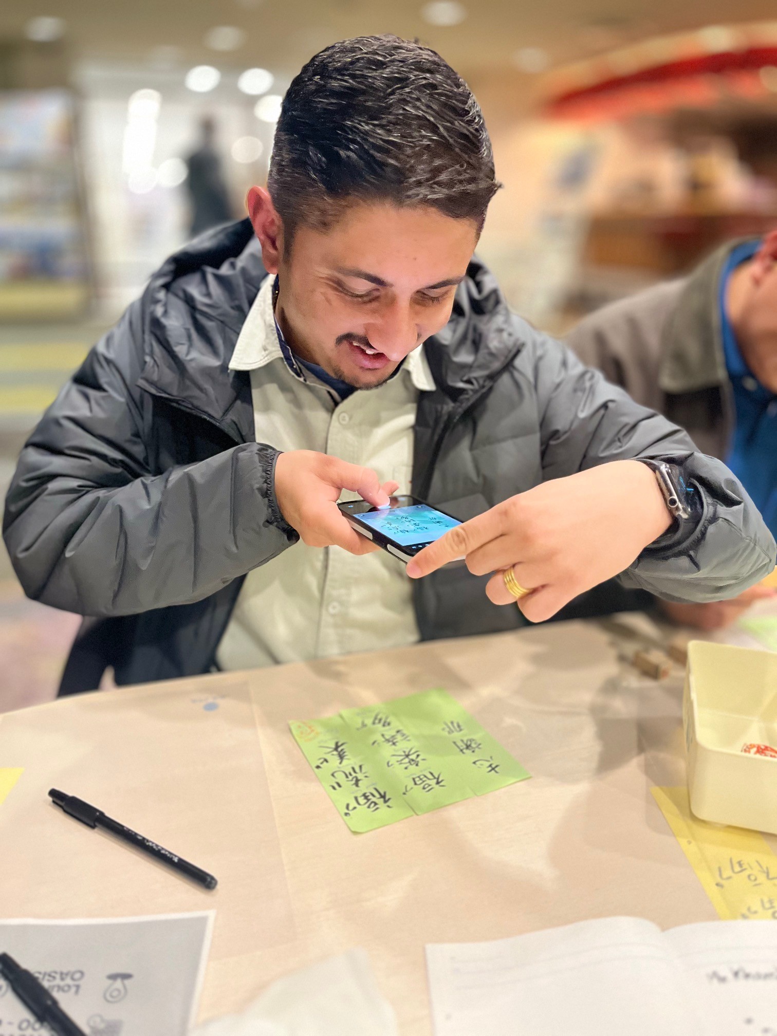 インターンは、ただ漢字を当てはめるのではなく、研修員と会話しながら「好きなもの」や「大切にしている価値観」を聞き取り、それに合う漢字を選びました。研修員からも「この漢字はどんな意味?」「発音は合っている?」といった質問が飛び交い、たくさんの会話が生まれました。