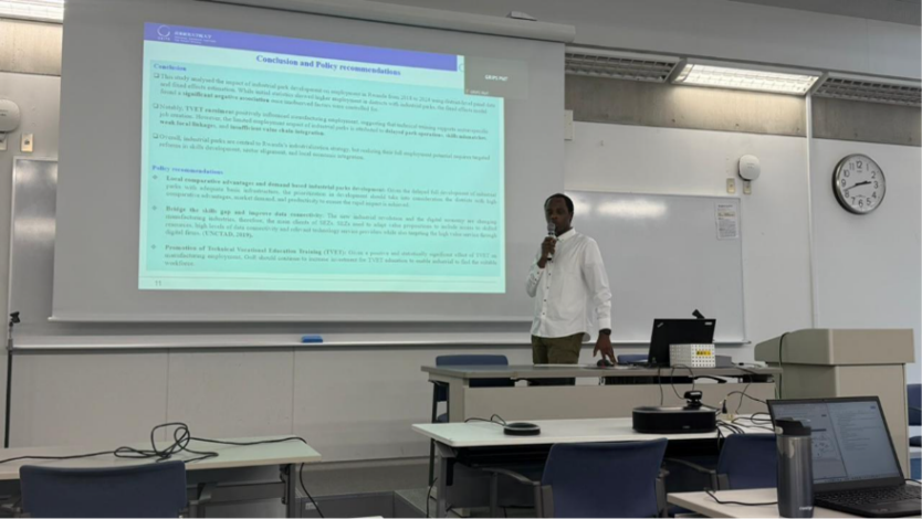 Jean さんの研究テーマは「ルワンダにおける産業団地(Industrial Parks)が雇用創出に与える影響」 です。
