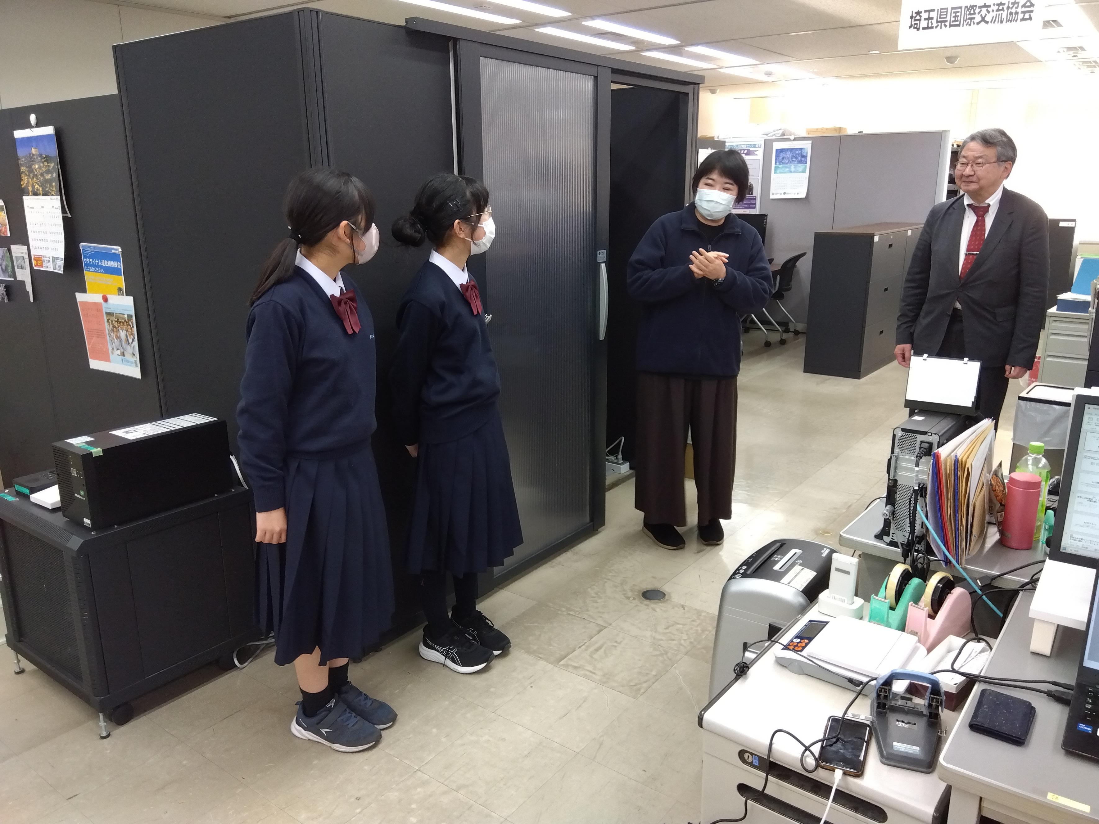 12月8日(月)~10日(水)までの3日間、JICA埼玉デスクの配置先(公財)埼玉県国際交流協会で、埼玉県立伊奈学園中学校の1年生2名の「社会体験チャレンジ」(職業体験)の受け入れを実施しました。