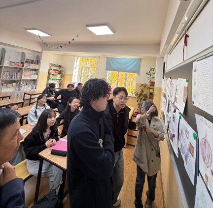 読解授業での「モンゴル遊牧民の名物紹介」の掲示を見学