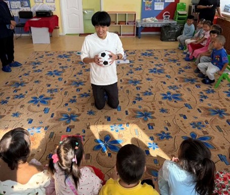 さらに、モンゴルでは、共働きの家庭が増えたことで、両親が仕事で忙しく、子どもと過ごす時間が十分に取れないという社会問題が深刻化していると伺いました。そのため、一部の保育園では、子どもたちが泊まり込みで生活したり、日帰りで通ったりしています。私たちはそうした子どもたちと交流し、日本の遊びやスポーツを紹介しました。中でも、モンゴルではあまり知られていないボウリングを一緒に楽しみ、子どもたちの笑顔を見ることができ、遊びを通して言葉や文化の壁を越えた交流ができたことは、私にとって忘れられない貴重な経験となりました。