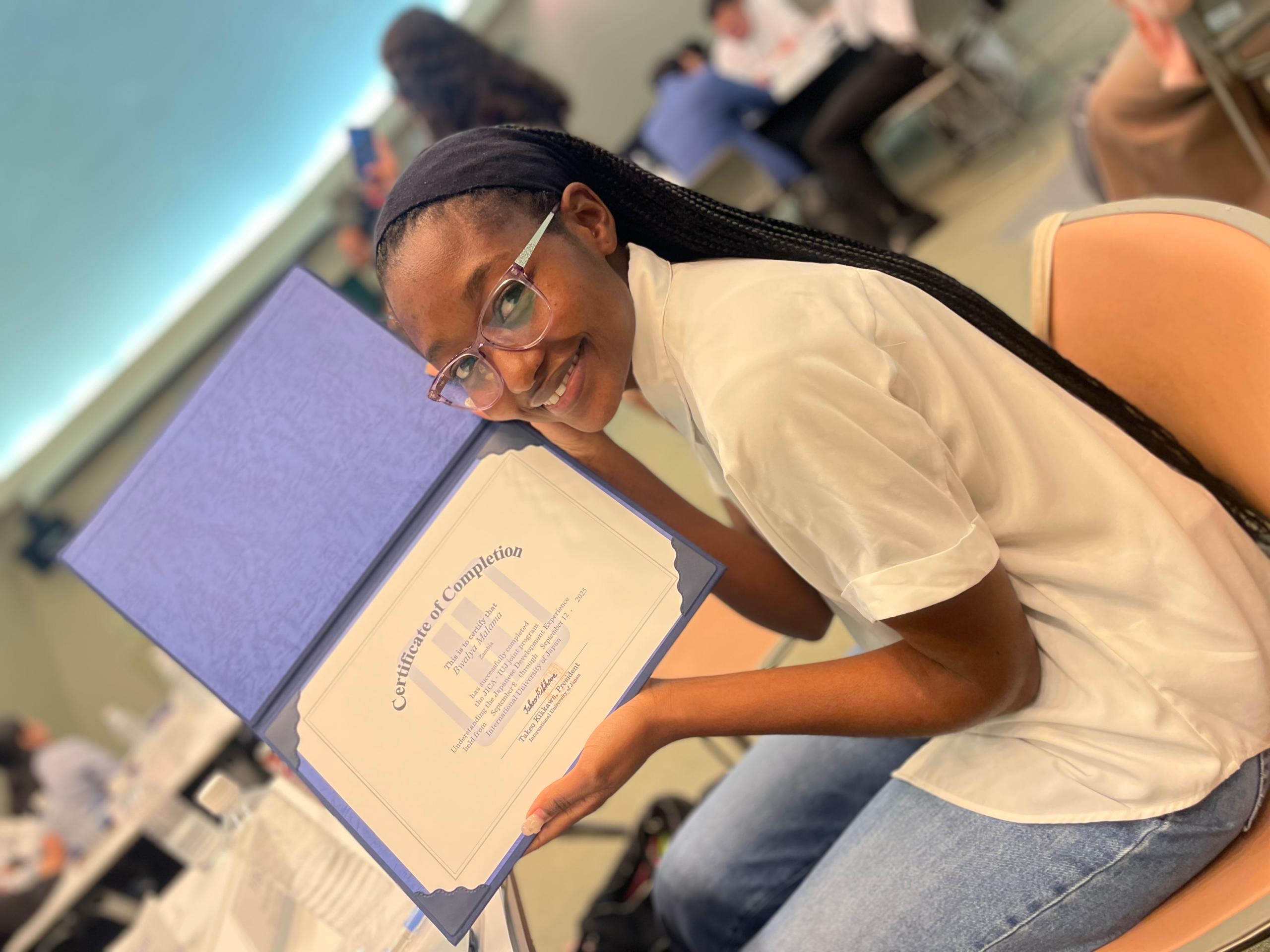 インタビューを通して感じたのは、異国での生活を前向きに楽しみながら、どんな経験も「学び」に変えていこうとする熱意ある姿勢でした。文化の違いに戸惑う場面があっても、日本語学習や茶道体験、旅行、大学での授業など、一つひとつを自分の力にしていこうとする姿がとても印象的でした。日本での経験が、今後ザンビアで若者支援やビジネス開発に挑むビーさんの確かな原動力になっていくはずだと強く感じました。