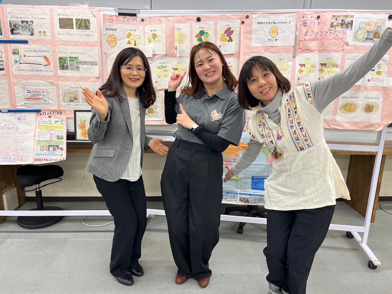 左から、昨年も本報告会に御参加くださった大田さん、南沢青和先生(JICA教師海外研修今年度参加者)、早川千恵子先生(JICA教師海外研修昨年度参加者)