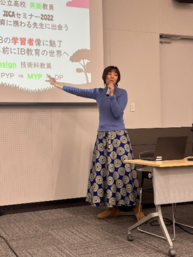 本報告会では、JICA教師海外研修としてタンザニアに派遣された有賀早也香先生、田中利奈先生、オランダ・ロッテルダム日本人学校の石田睦先生、イギリス・ロンドン日本人学校の奈良雅裕先生の計4名の登壇者より、それぞれの任地における貴重な経験と教育実践についてご報告がありました。