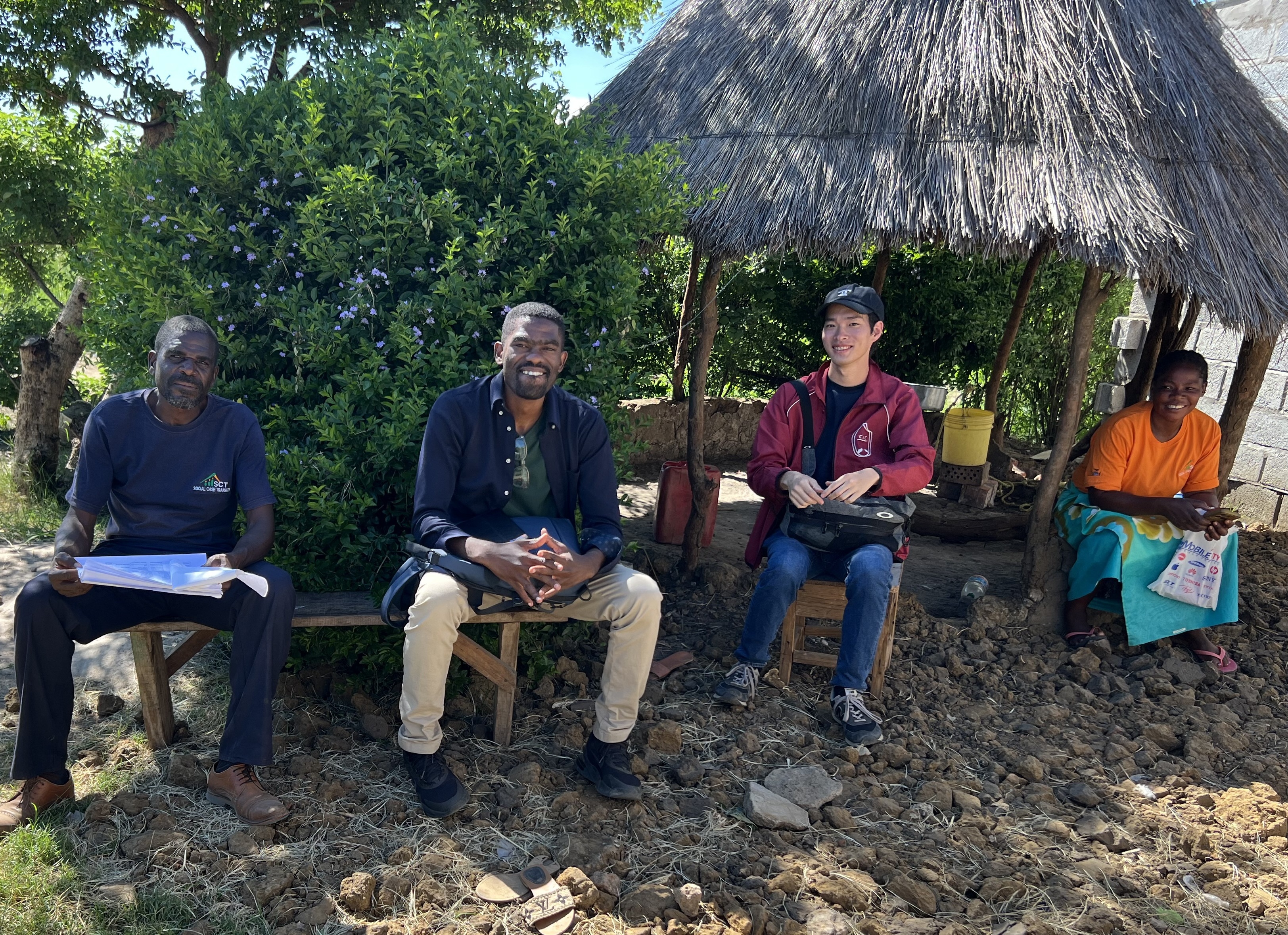 ザンビア国チサンバ郡で実施したインタビューセッション後に社会現金給付受給者たちと