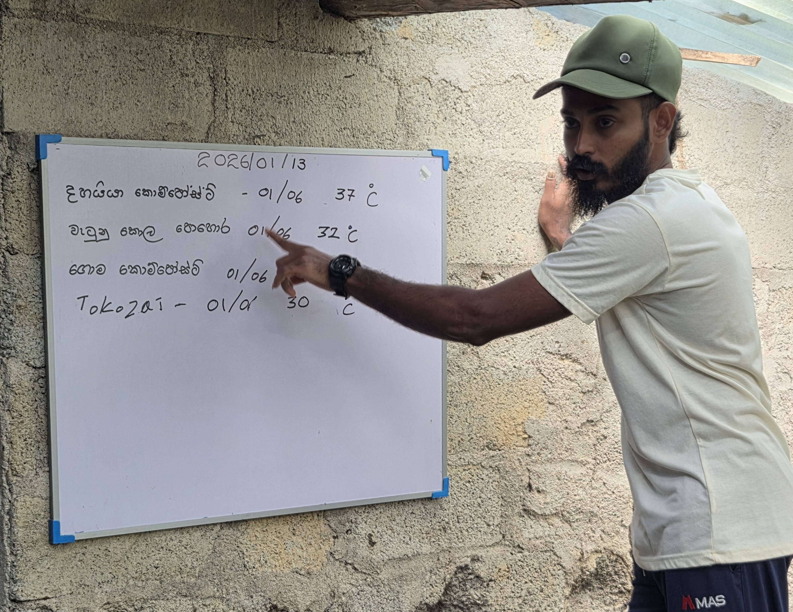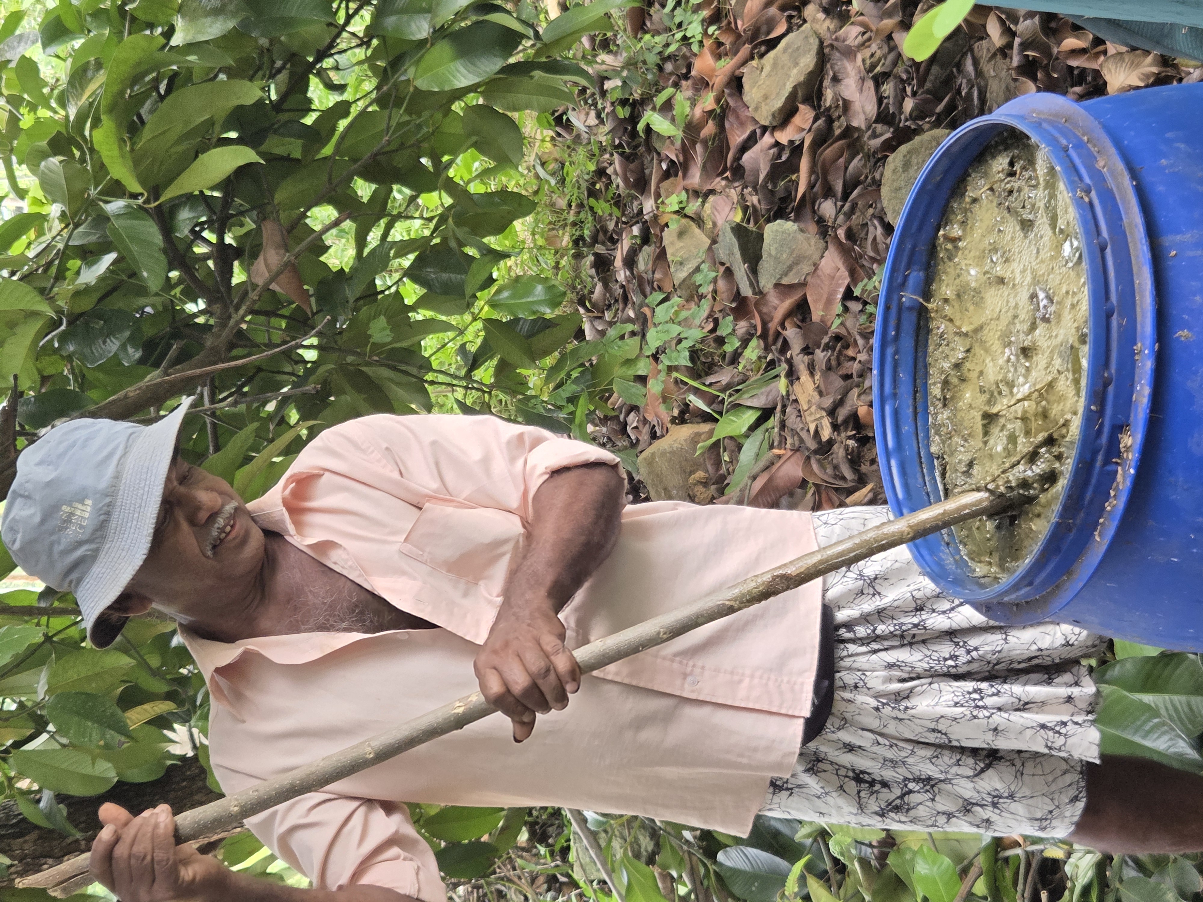 有機栽培への転換は、いかに栄養分に富む有機堆肥を作れるかが重要です。本事業では、従来からある現地の堆肥づくりに加え、日本での研修や堆肥専門家の派遣を通じて、日本式の有機堆肥の考え方や作り方も伝えています。農家は複数の堆肥や液肥を試作・比較し、現地で入手可能な材料を使ったより効果的な堆肥を模索しています。