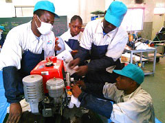 農業機械実習棟では、各種農機具の構造、利用、整備、性能評価試験、経済的評価等に係る理解を通じて、持続可能な農業機械化に関する技術を学びます。