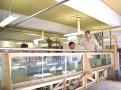 かんがい排水実習棟では、土質実験、コンクリート実験、水理実験を通じて、水資源を有効活用するための技術を学びます。