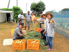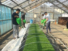 ほ場(畑)では、稲の畑栽培技術(耕うん、施肥、播種、水管理、病害虫防除、収穫など)や野菜の栽培技術(耕うん、施肥、マルチ張り、定植、追肥、整枝、土寄せ、除草、交配、水管理、病害虫防除、収穫など)について、比較試験を行いながら学んでいます。