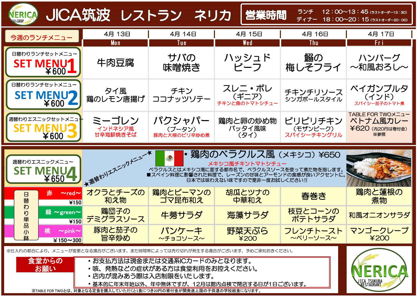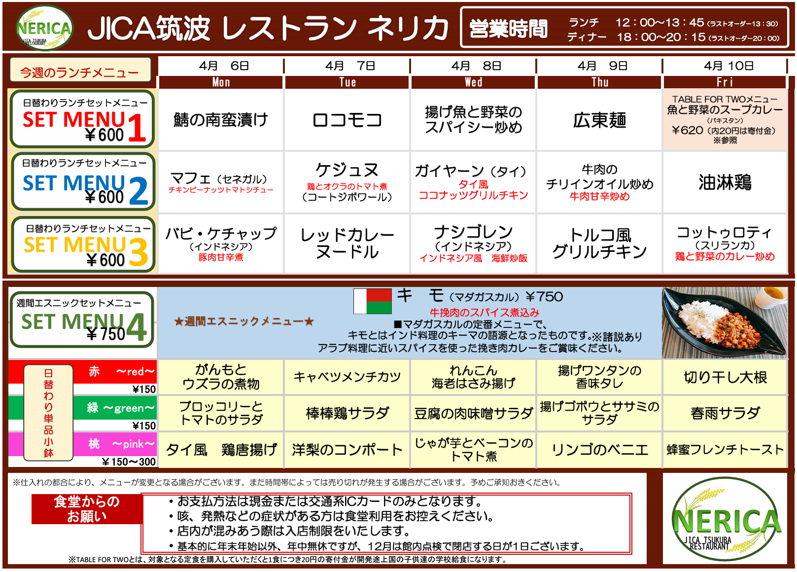 NERICAのランチタイムでTABLE FOR TWOメニューを提供しています(不定期)