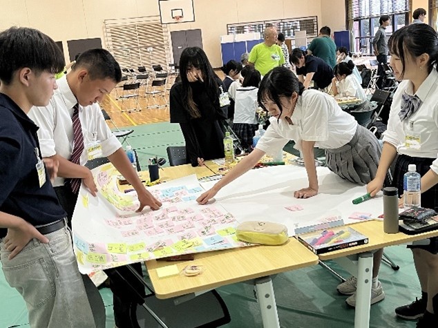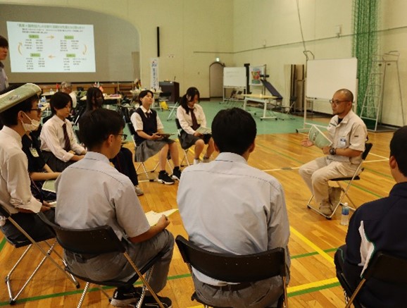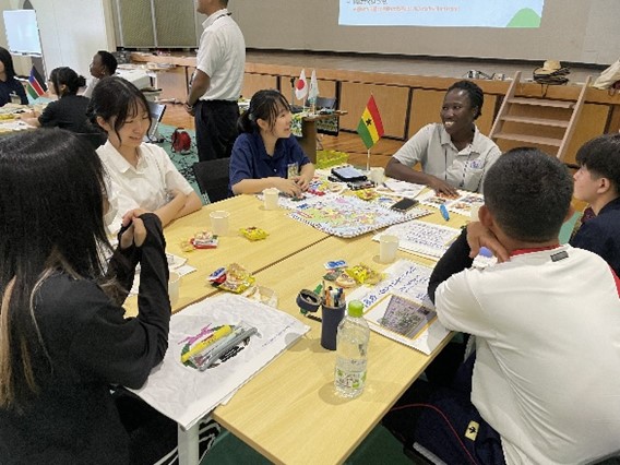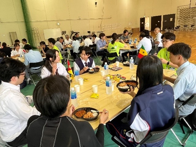 昼食にはアフリカのお米「NERICA」を使用したお弁当を味わいながら、国際協力に携わるJICA職員や海外協力隊経験者との交流を深めました。高校生は、専門分野を生かした様々な仕事があること、またそのやりがい、多様な進路や可能性について理解を深めました。普段の生活では得られない知識や経験を共有できる貴重な時間となりました。
