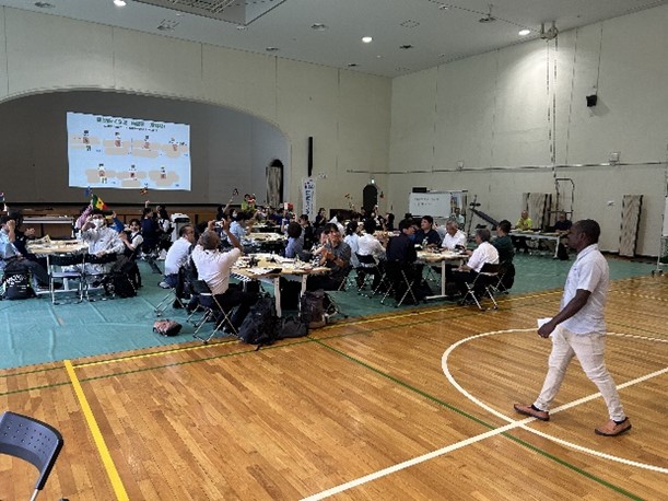 開会式ではJICA筑波の高橋所長による講話の後、グループで「私の学校のここがすごい!」「今の気持ち」などを共有し、さらに全体で「サイレント自己紹介」を実施。言葉を使わずに身振り手振りで自己紹介を行うユニークな活動に、会場は笑顔や笑い声に包まれました。