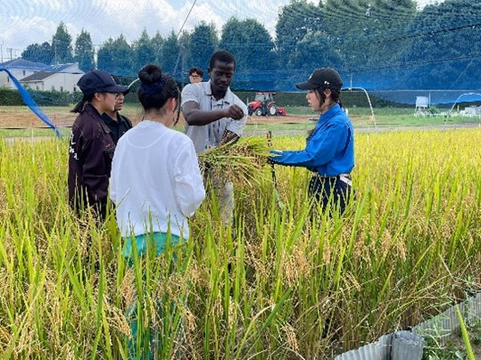 ●稲作を学ぶアフリカ出身の研修員との交流② 稲の収量サンプリング調査