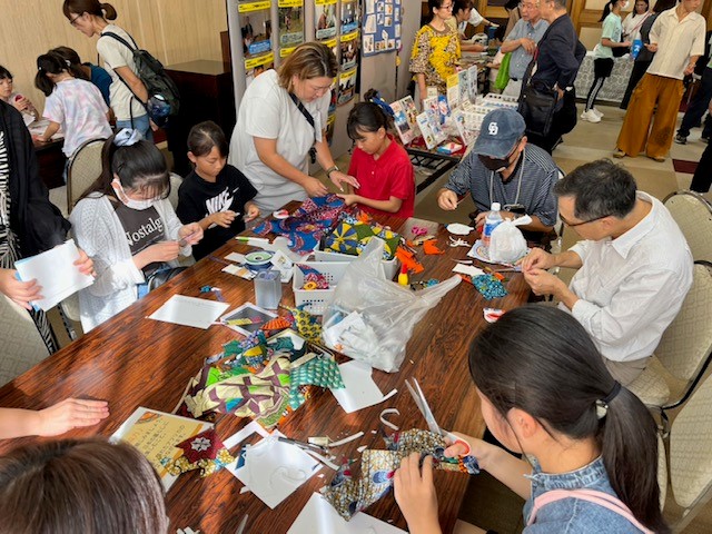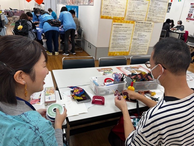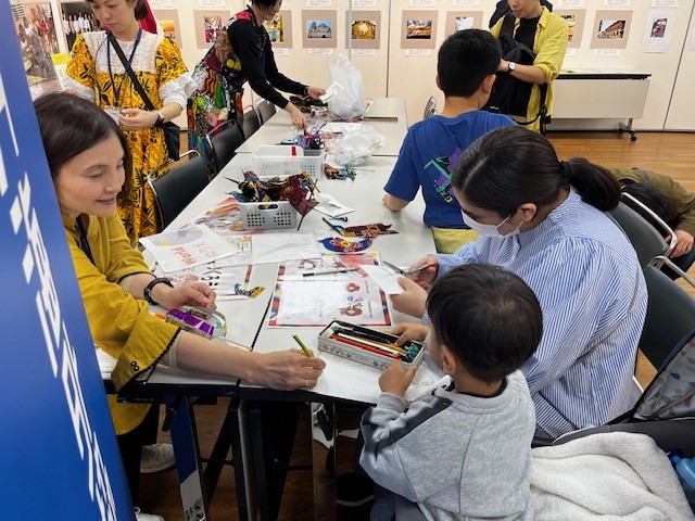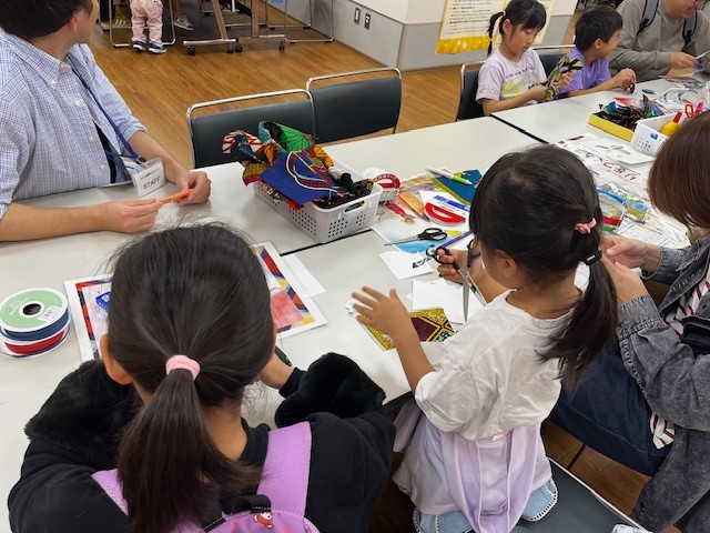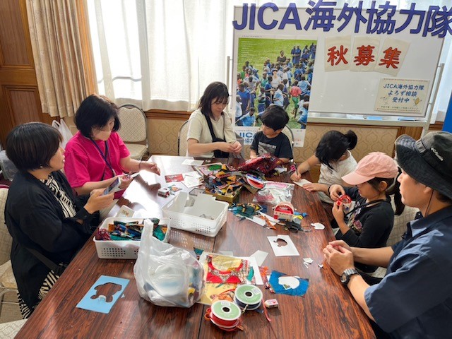 JICAブースでは、カラフルなアフリカ布を使った「しおり作り」体験が大人気!「こんなに鮮やかな布があるなんて知らなかった!」と驚きの声も。JICA海外協力隊経験者が現地でのエピソードを交えながら交流し、小学生から大人まで夢中になってオリジナルしおりを完成させていました。国際交流の輪が広がる、心温まる時間となりました。