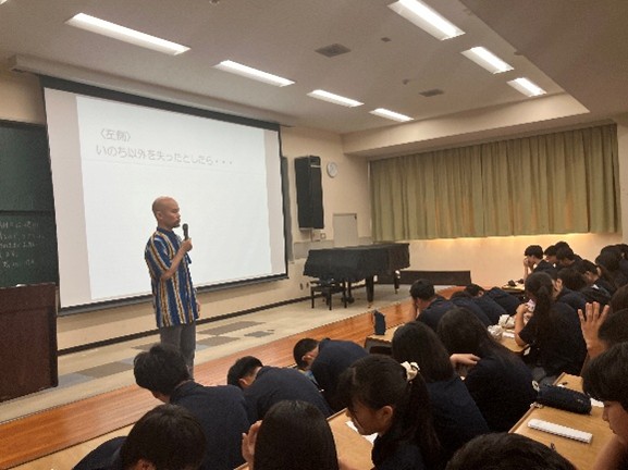 茗渓学園中学校高等学校の木村昌司先生は、中学3年生を対象に、学校で行っている平和学習の一つとして、ウガンダの難民を取り上げました。まずは先生が研修中に見たことや訪問した先を中心にウガンダの紹介をし、次にウガンダの難民受け入れの現状についての話をしました。その後、生徒たちは「命の持ち物検査」のワークショップを行い、難民の気持ちを体感しました。更に、先生が実際にインタビューした難民居住区の子どもの話を伝えることで、難民問題を身近にとらえることができました。最後は自身ができる支援について考えました。この後の平和学習につながる授業ができました。