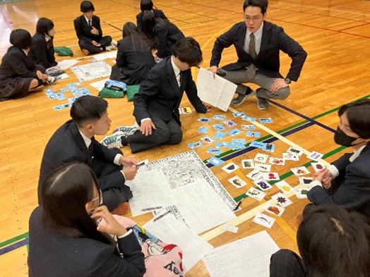 茨城県立三和高等学校の滝本大翔先生は、3年生の総合的な探究の時間で、日本と世界との関わりを知り、生徒自身が地域社会でどのような貢献ができるかを考える授業を行いました。「モノはどこからきているの?」ゲームを取り入れることで、生徒自身がいつも使っている様々なものが世界から来ていることを実感することができました。更に、各自で好きなものを選び、それがどのように世界とつながっているかを、インターネットを使って調べました。調べてみて初めて分ったことや、新しい視点を得たことで、自分たちが、世界にどのように貢献できるかを考えるきっかけとなる授業になりました。