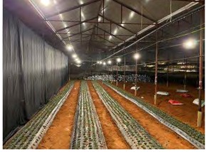 夜間の試験栽培の様子(オグラ栽培区)