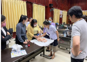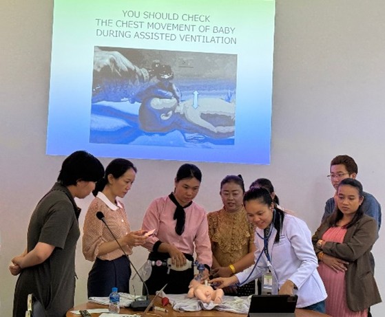 認定NPO法人あおぞらでは、JICAに集まった寄附金であるJICA基金を活用させていただき、ラオスで「安心・安全な出産を支えるプロジェクト」を進めています。このプロジェクトは2年目になりますが、現在の事業では(インタビューした2025年夏時点)、昨年養成したラオス人指導者が自ら研修を実施できるようサポートすることが目標です。具体的には、新生児蘇生法の研修会をラオス人インストラクターが主導し、日本人が監督する形で行います。新生児蘇生法とは、赤ちゃんが生まれた直後に呼吸や心拍がうまく始まらない場合に、命を守るために行う救命処置のことです。