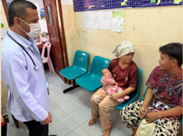 ラオスの郡病院を受診する家族の様子