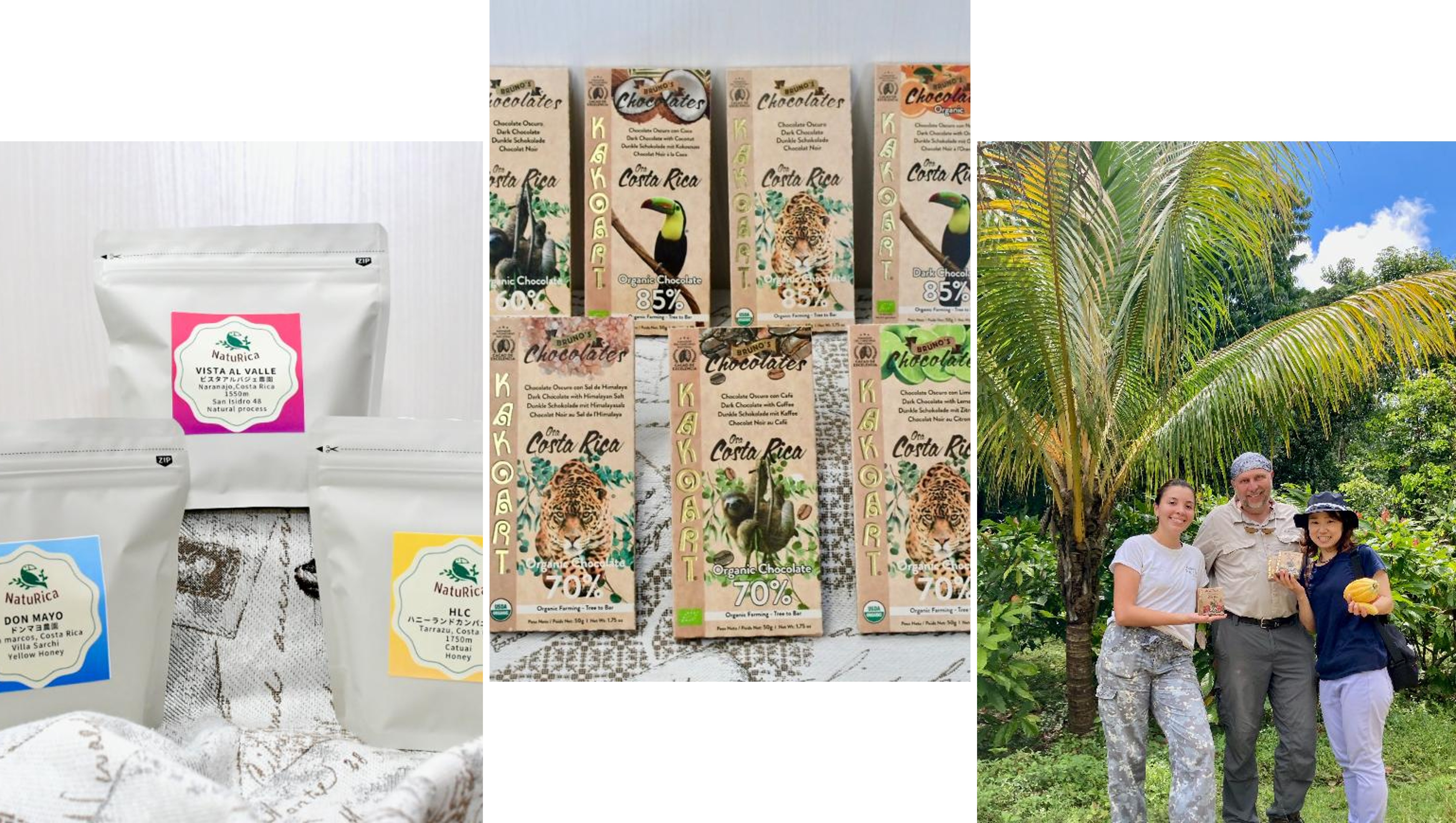 コスタリカのコーヒーとチョコレートを仲介業者を通さず現地の生産者からフェアトレードで直輸入し販売しています。