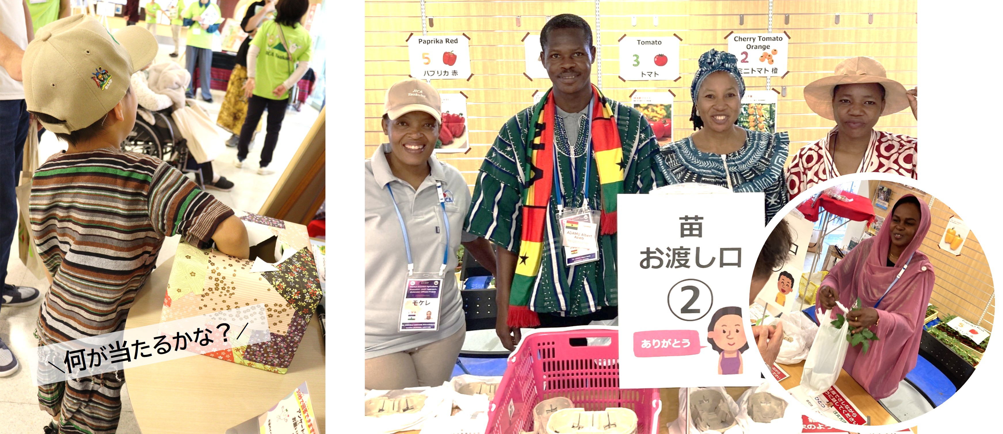 スタンプラリーをクリアした方には、世界の民芸品やトマト・パプリカの苗木をプレゼント!
