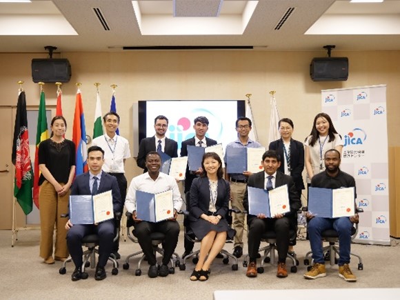 さて、各受け入れ先大学での修士等の学位授与を無事終え、帰国前の研修員に対して、2023年9月8日にJICA横浜で修了式を行いました。今回は、インドネシア、パキスタン、ラオス、アフガニスタン、ルワンダ、ベナンから7名の研修員が自身の研究成果を発表し、修了証が授与されました