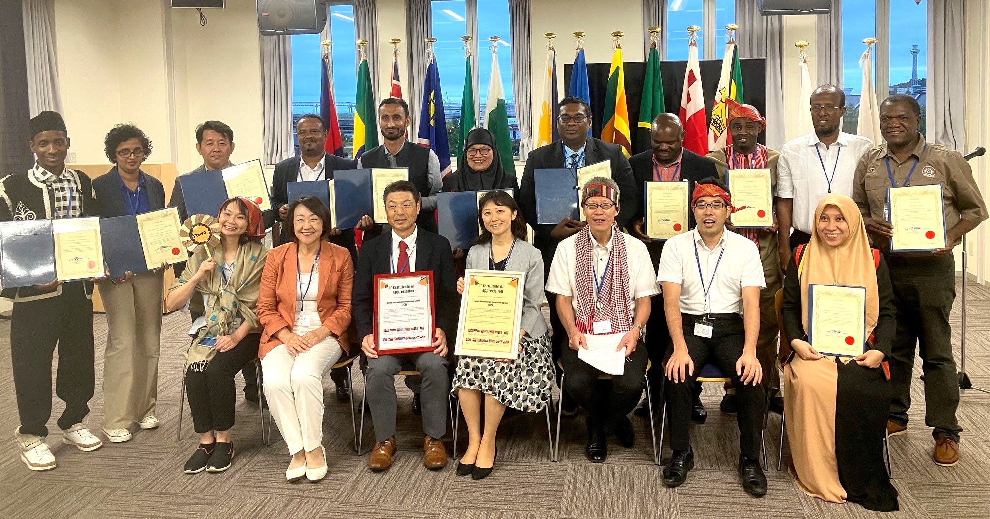 研修員は職業訓練に関する幅広い知識を学びました。研修員からは、日本の制度に基づいた業務の実施形態が学べ、また、日本の優れた職業訓練の状況について学ぶことができたとの感想がありました。自分が帰国してから、自分の働く研修施設で、5S、カイゼン、CUDBASについて活用したいと決意表明がありました。また、日本の状況が理想的、実用的であり、この美しく、人々が勤勉な日本にまた来たいとの感想もありました。研修員には通常、閉講式でJICAから修了証書が授与されますが、今回はサプライズで、研修員からJICA、JICEに対する感謝状の授与もあり、JICA担当者、JICE担当者ともども非常に感銘を受けた研修になりました。