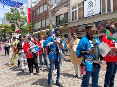 研修員は自国の民族衣装や日本のハッピ姿で参列し、国旗を振ったり民族楽器を奏でたりしながら、山下公園から馬車道、伊勢佐木町まで約3.4キロを練り歩きました。途中、沿道に詰めかけた多くの観客の方々から写真を撮られたり声をかけられたりするなか、非常に堂々とした様子でパレードを最後まで歩きとおしました。