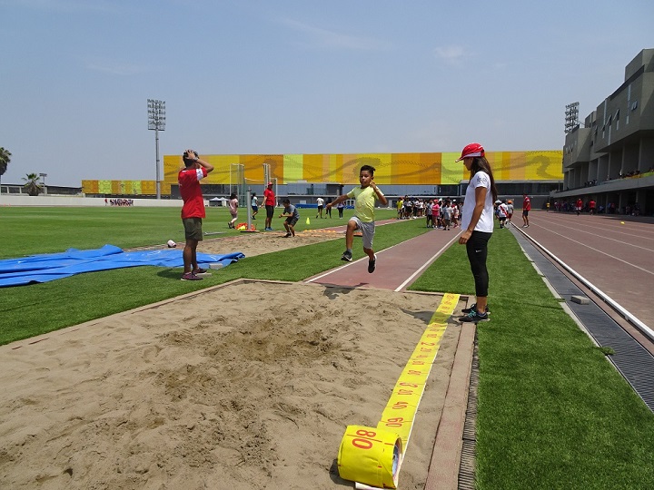 松井さんの要請内容は、「ペルー陸上競技の強化・普及」でした。12月に派遣され、1~2月はペルー陸上競技連盟が主催する陸上アカデミーにコーチとして指導。会費を支払った方が参加できる制度で、リマ市内の6~18歳の約200名が参加。1~2月は学校では?と日本の感覚で思ってしまったのですが、季節が逆の南米では、この時期が夏休み。その間「運動をしたい」、「体力づくりをしたい」という子どもたちを対象に、月~金曜日の週5回、午前の部・午後の部とそれぞれ2時間指導していました。