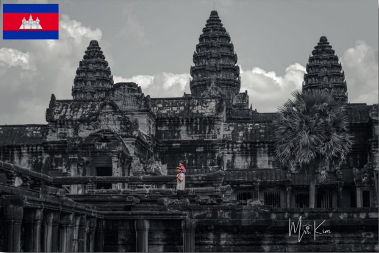 A father carries his child with joy and love in front of Angkor Wat, symbolizing family bonds across generations, culture, and values.